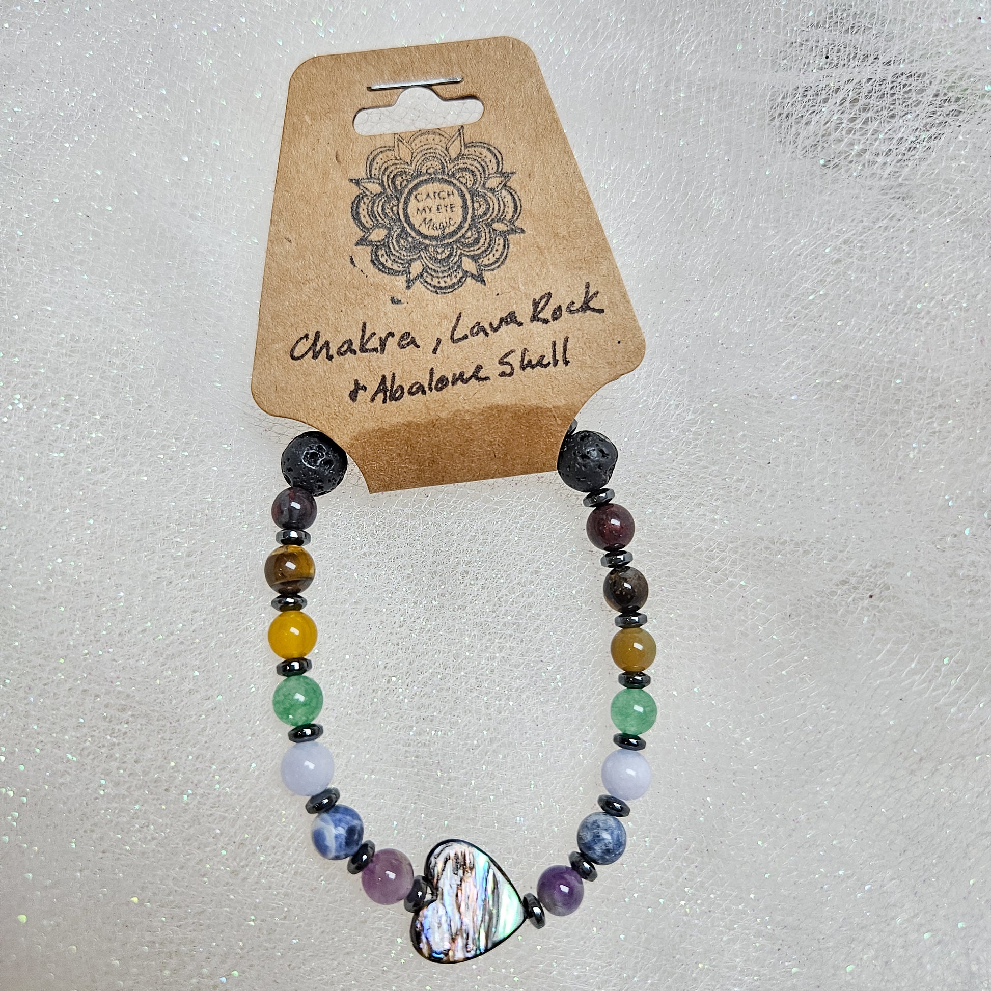 Chakra, Lava Rock & Abalone Shell Crystal Bracelet