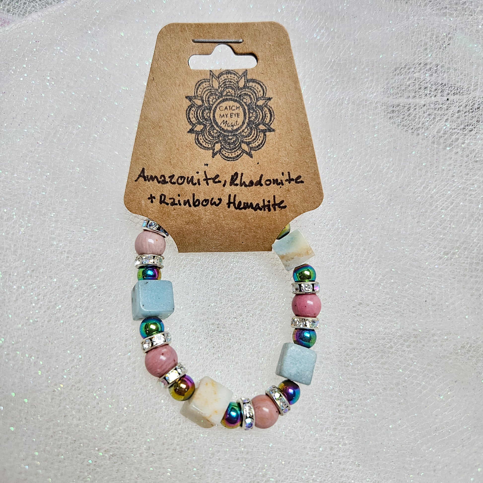 Amazonite, Rhodonite & Rainbow Hematite Crystal Bracelet