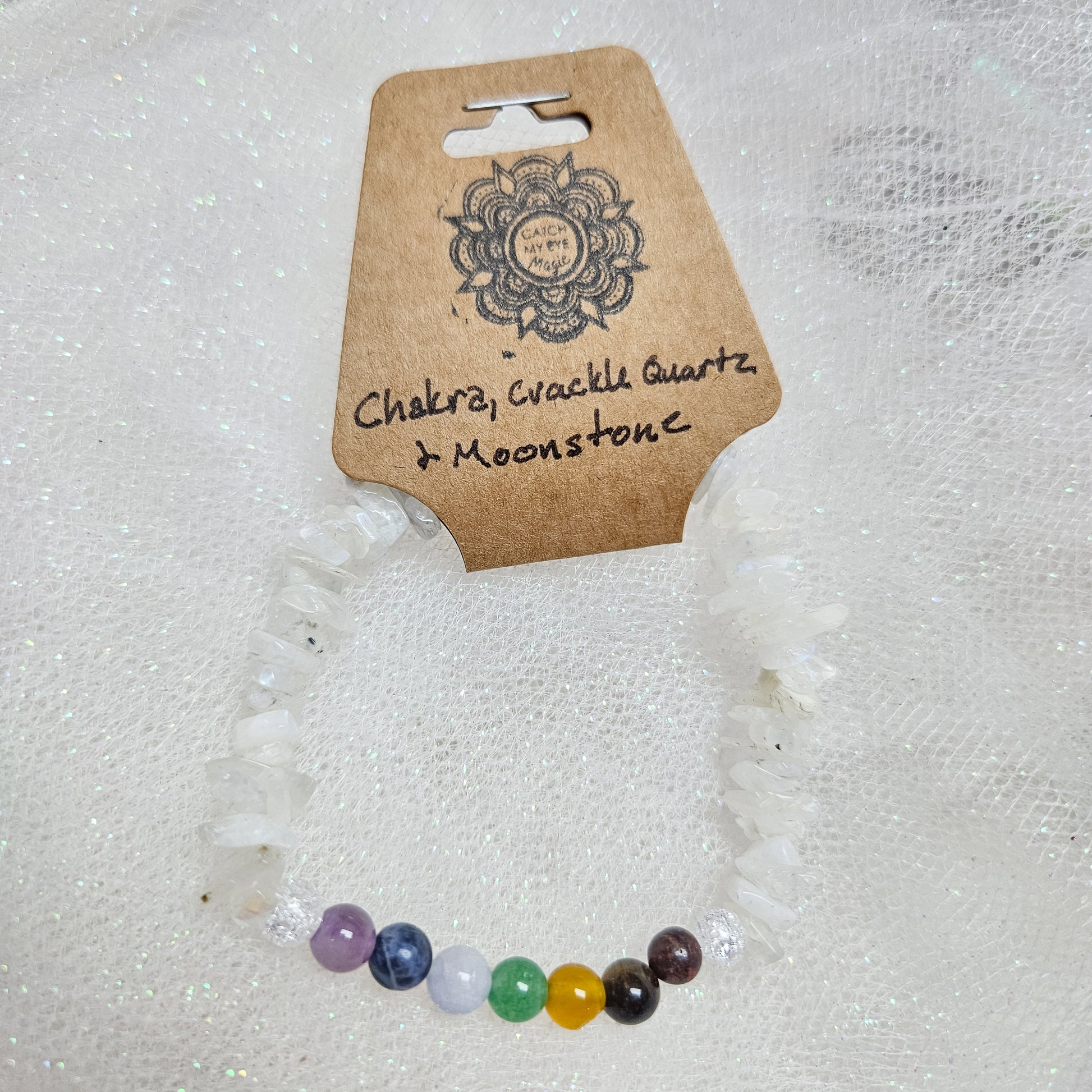 Chakra, Crackle Quartz & Moonstone Crystal Bracelet