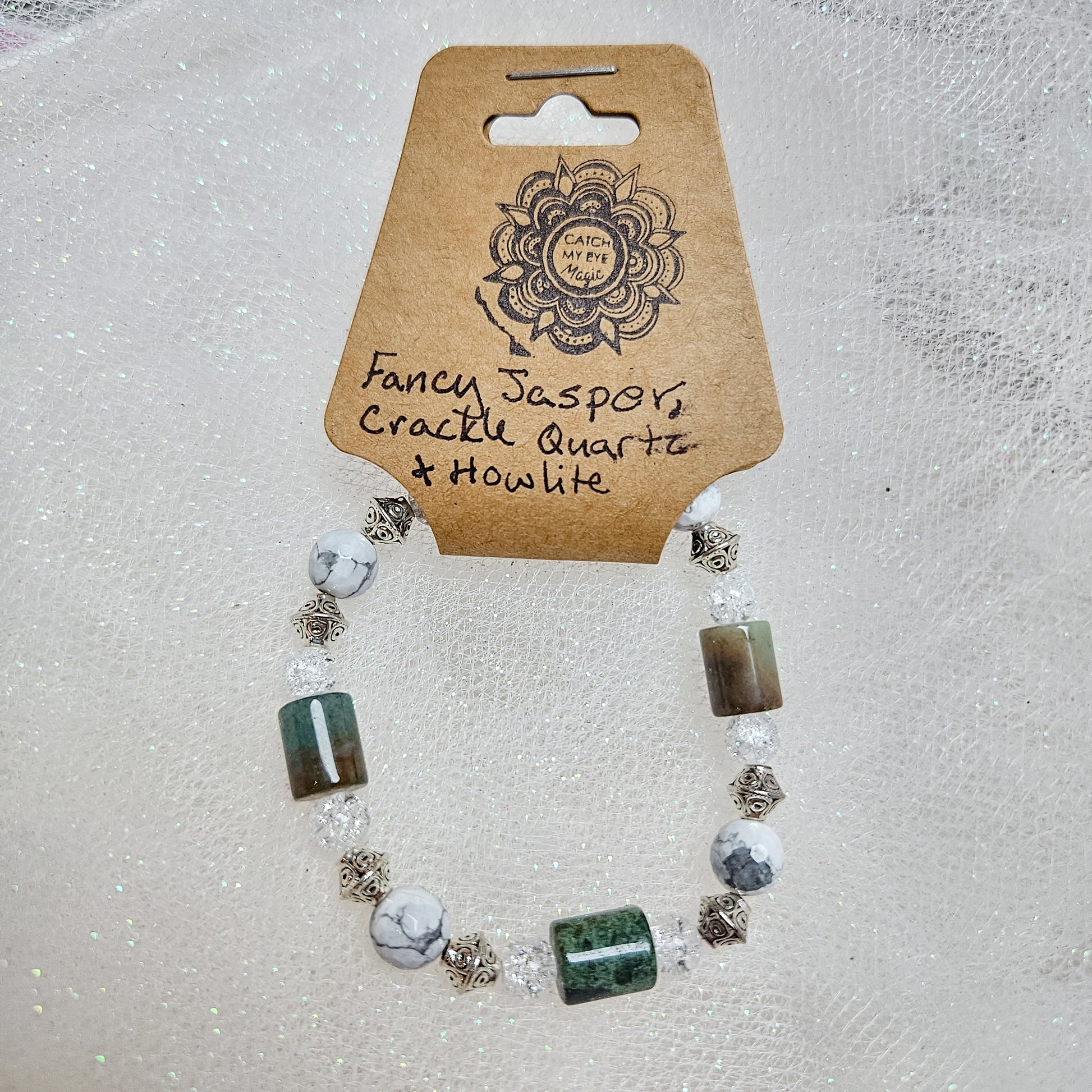 Fancy Jasper, Crackle Quartz & Hematite Crystal Bracelet