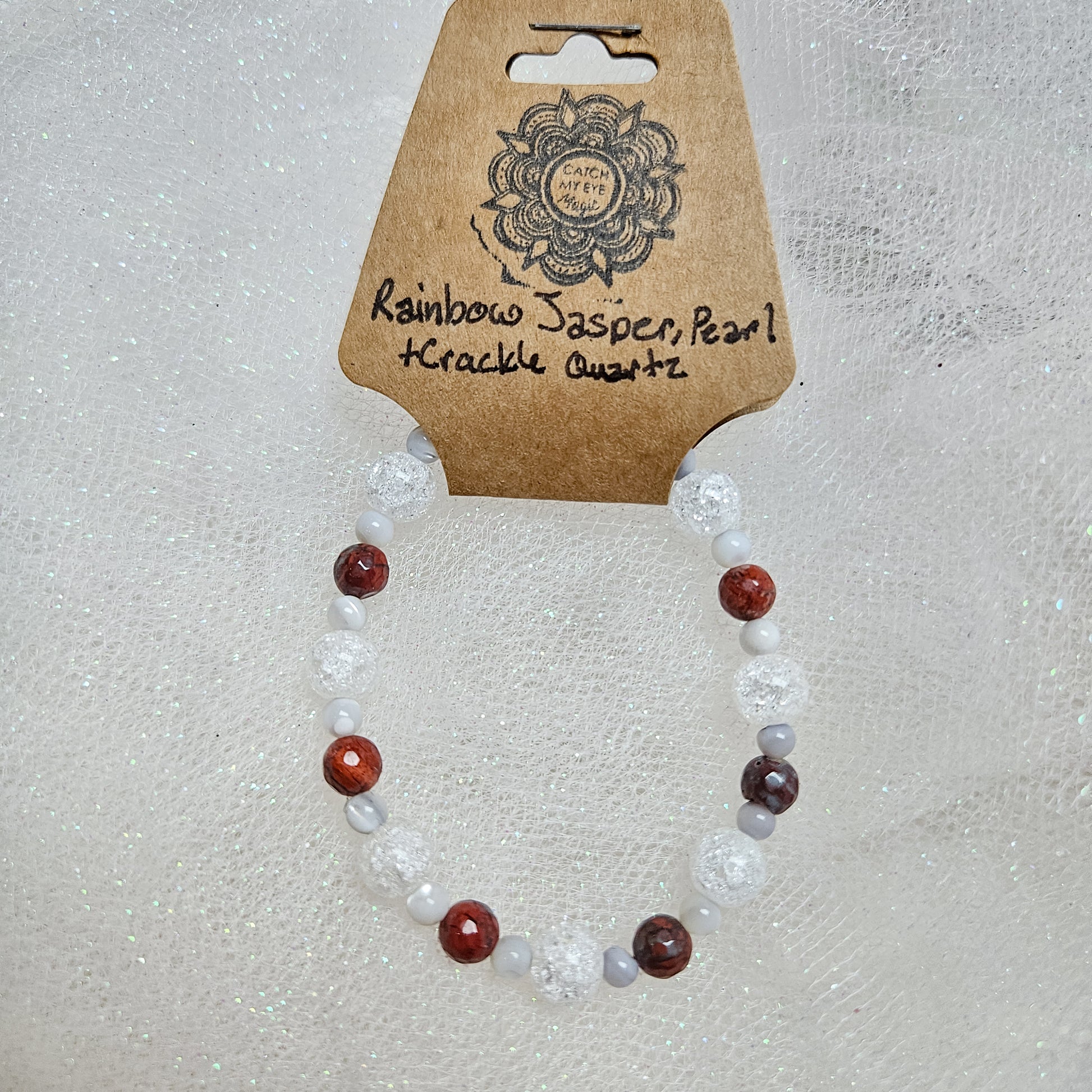 Rainbow Jasper, Pearl & Crackle Quartz Crystal Bracelet