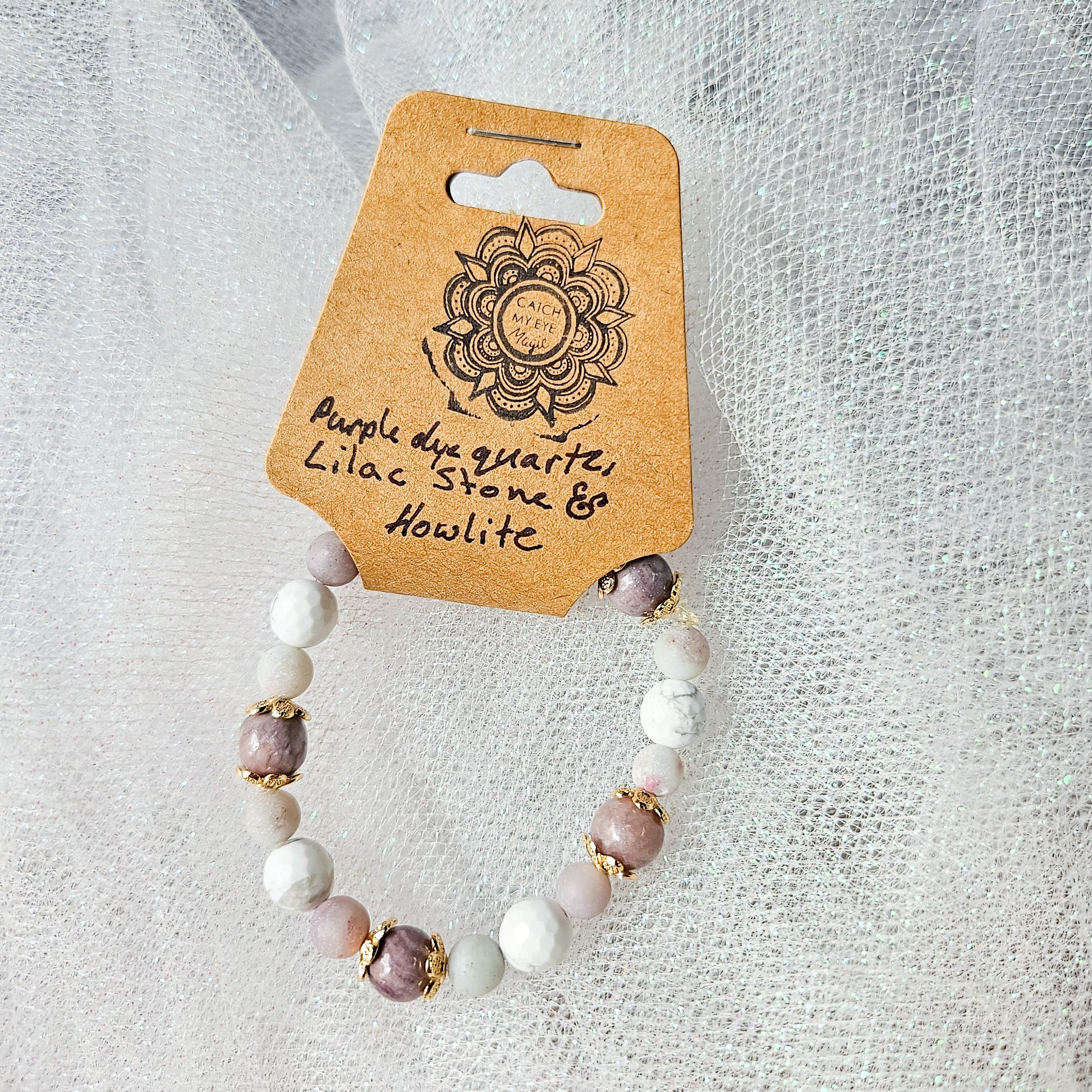 Purple Dye Quartz, Lilac Stone & Howlite Crystal Bracelet