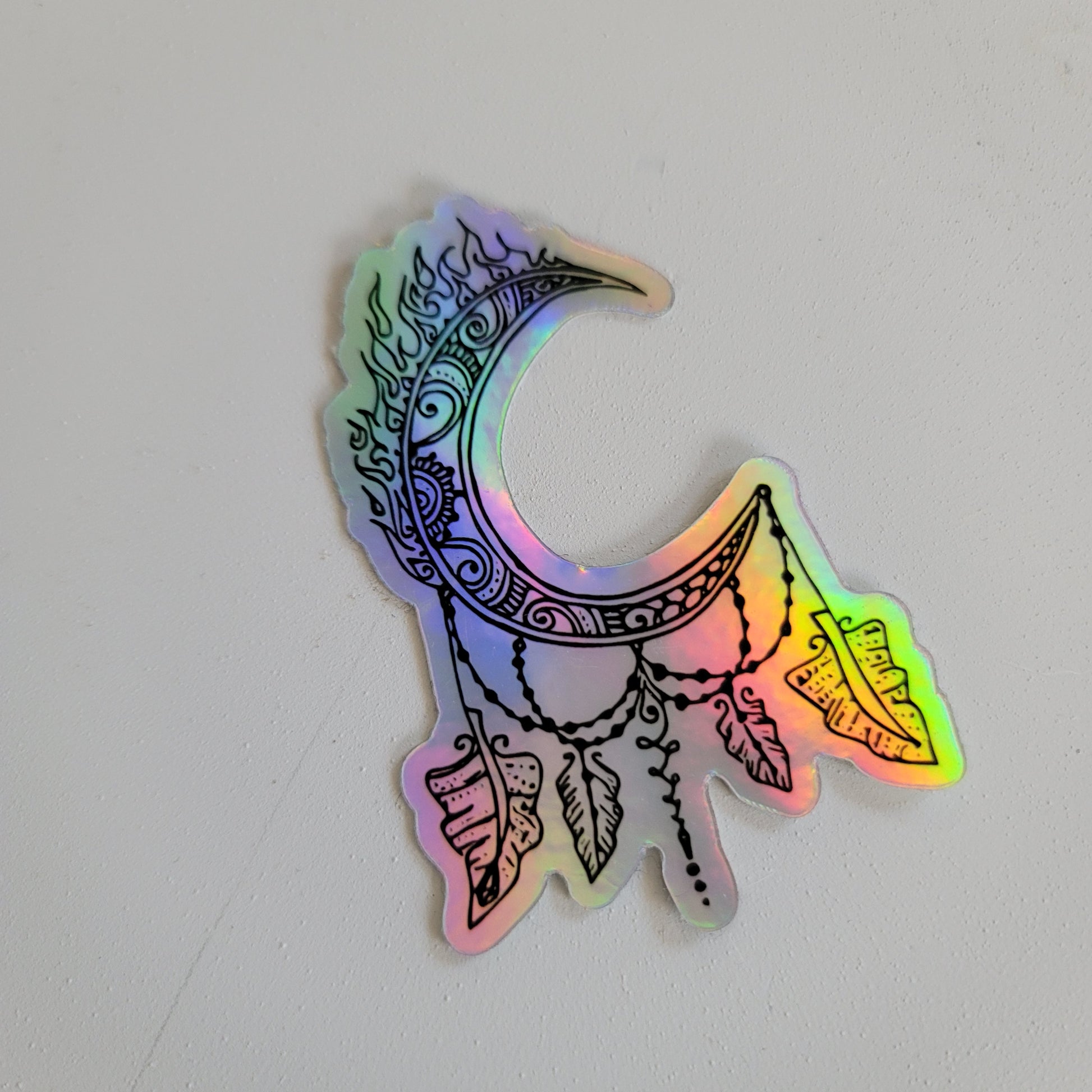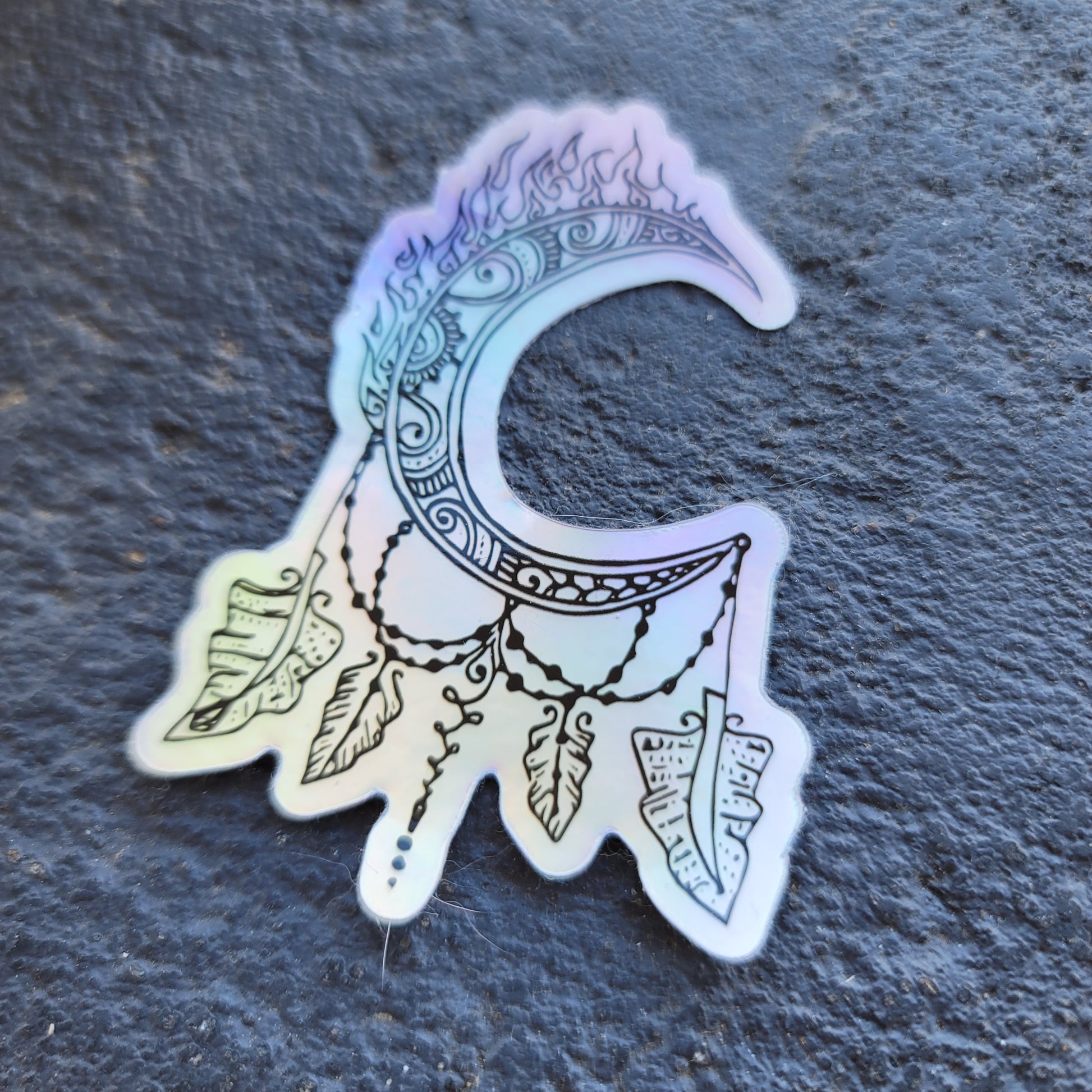 "Crescent Fire Moon Dreamcatcher" waterproof art sticker