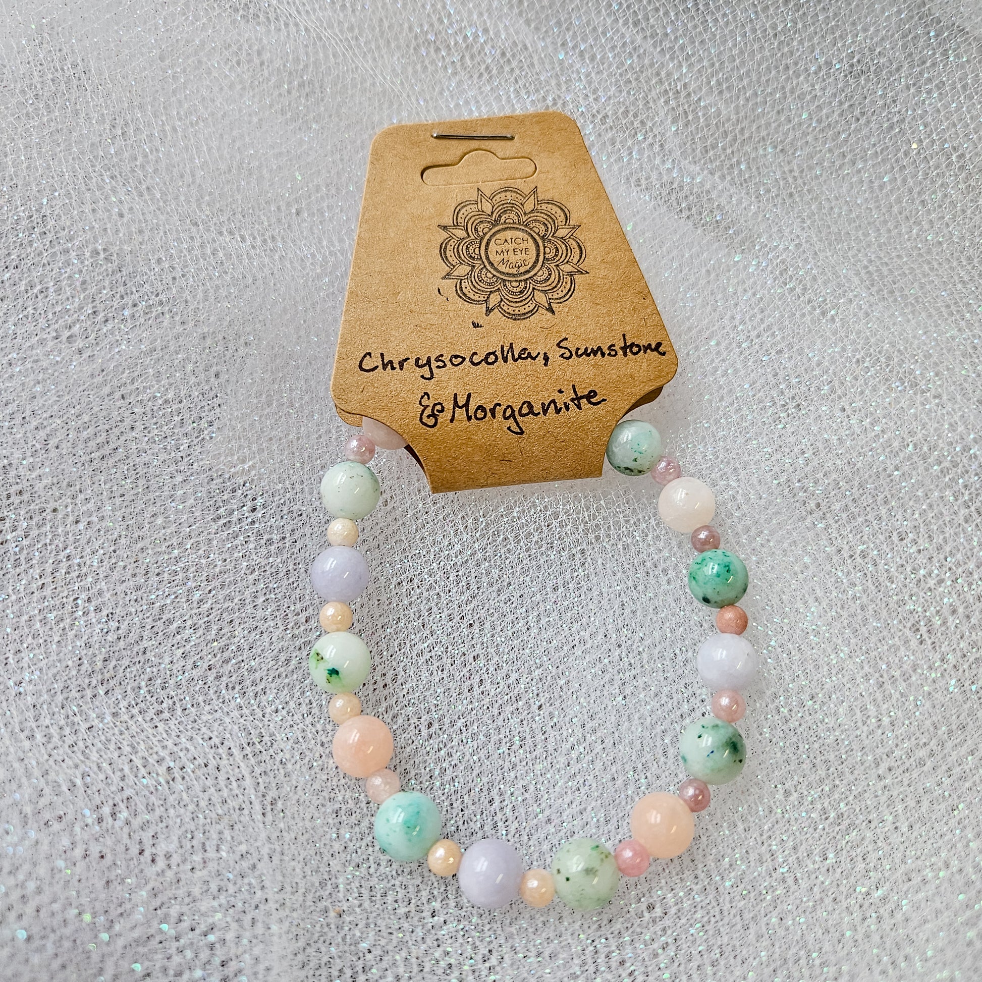 Chrysocolla, Sunstone & Morganite Crystal Bracelet