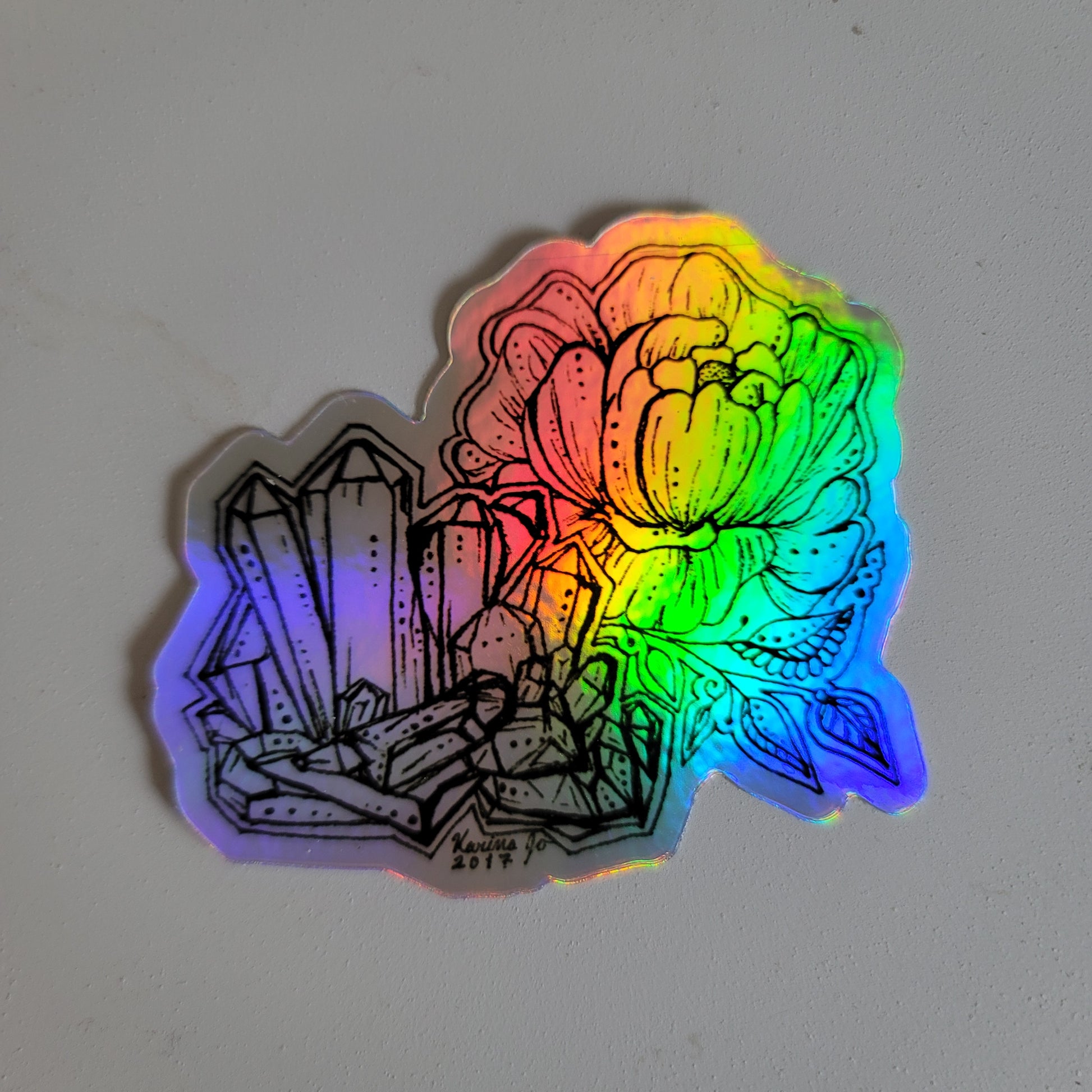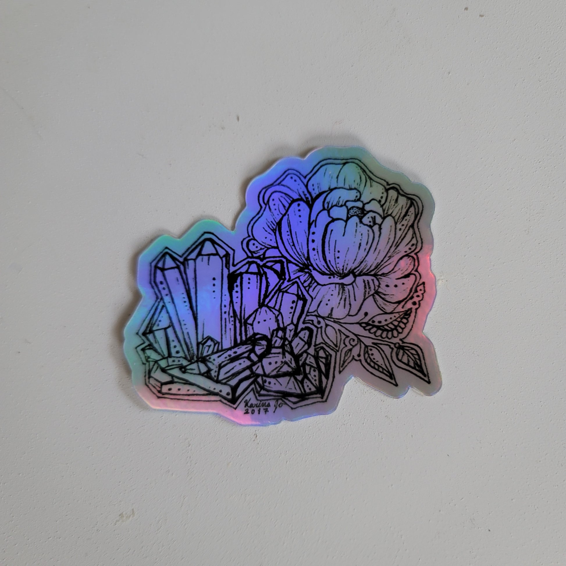 This is a sticker print of the drawing "Crystal Peony"