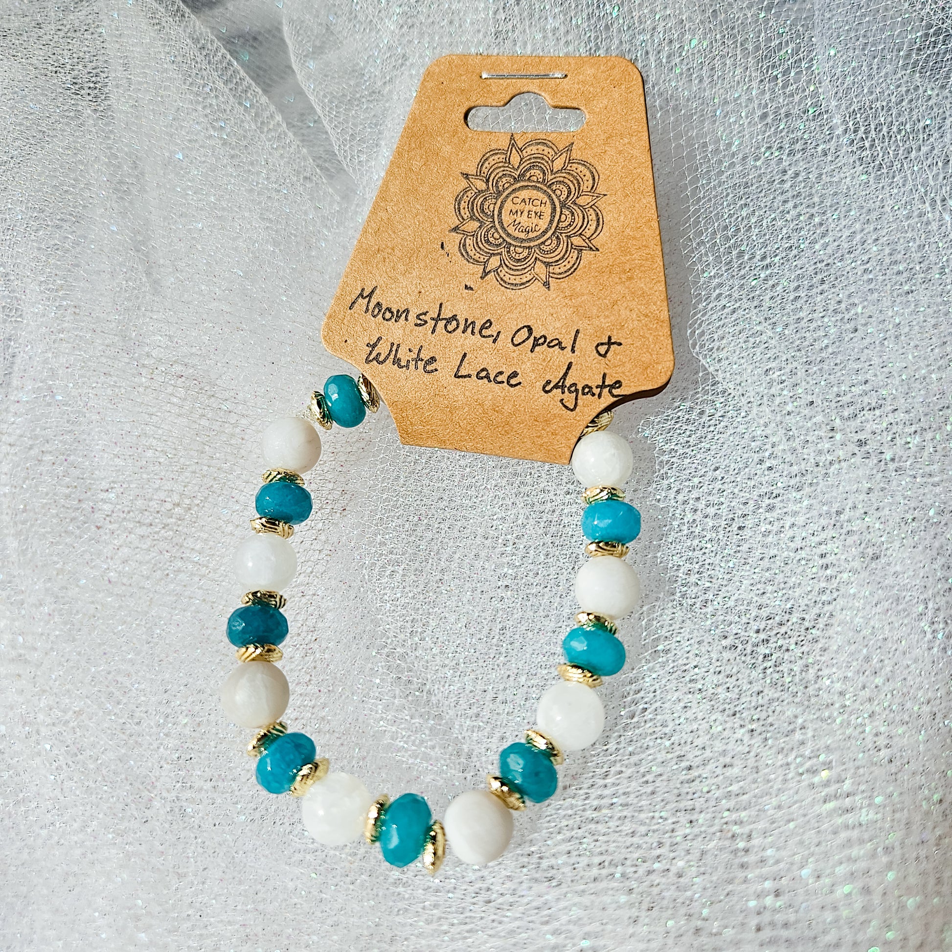 Moonstone, Opal & White Lace Agate Crystal Bracelet