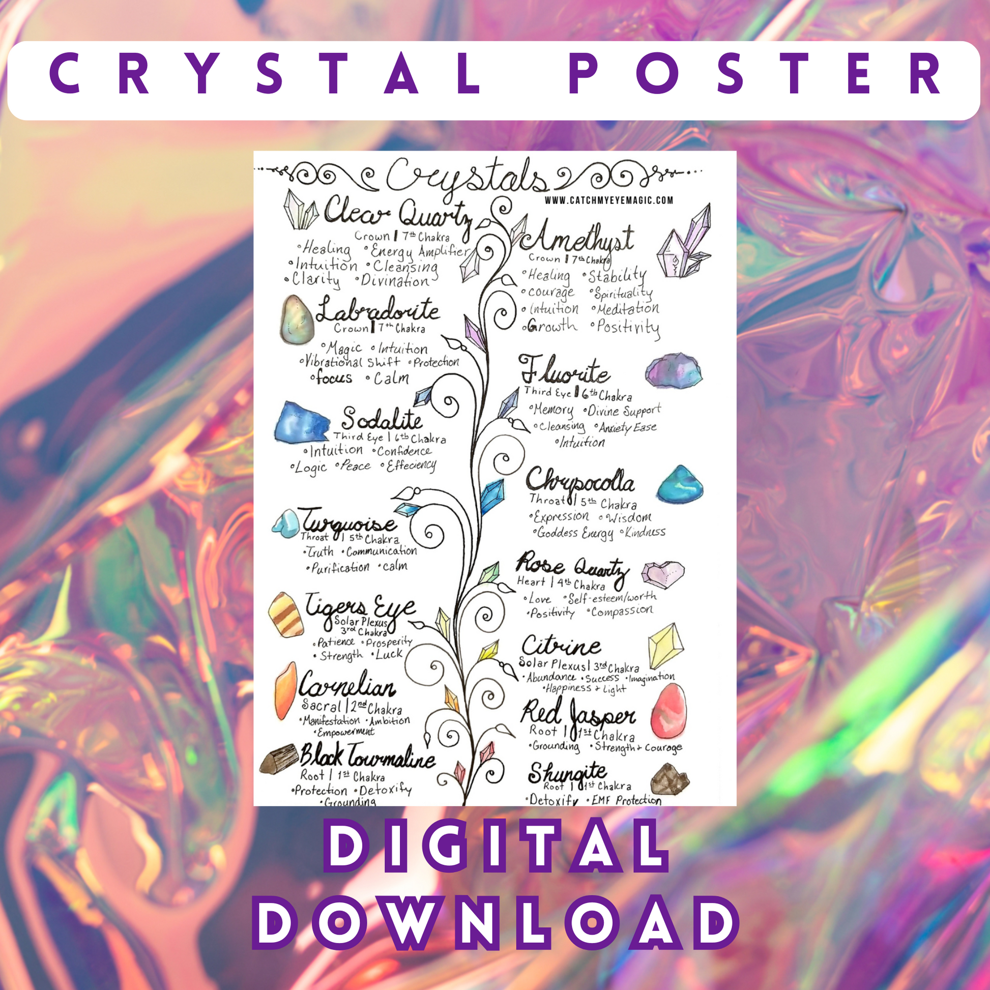 I hope this poster encourages you to expand your crystal collection and to work with those stones for their magickal purposes! 💜